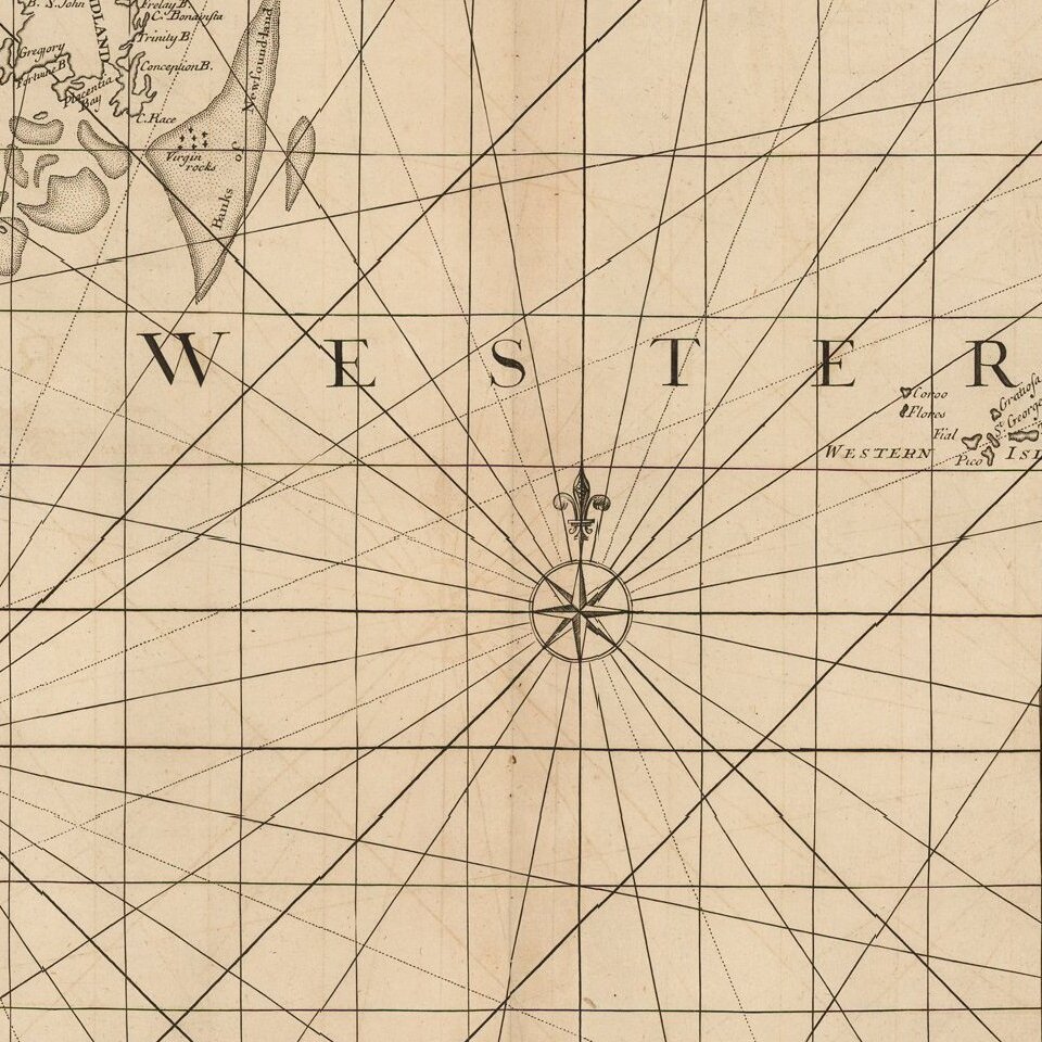 This chart was included in an important English maritime atlas of the early-eighteenth century, the Atlas Maritimus et Commercialis. The atlas included a geography text, sailing directions, and sea charts. It was published by, among others, the Knapton brothers, who were also responsible for some of the bestselling voyage accounts of the early- to mid-eighteenth century, including those of William Dampier.