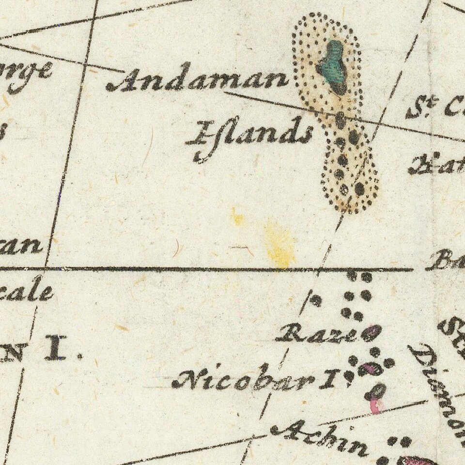 Detailed map of the Indian Ocean, Southeast Asia, China, Formosa, the Philippines and part of Australia.