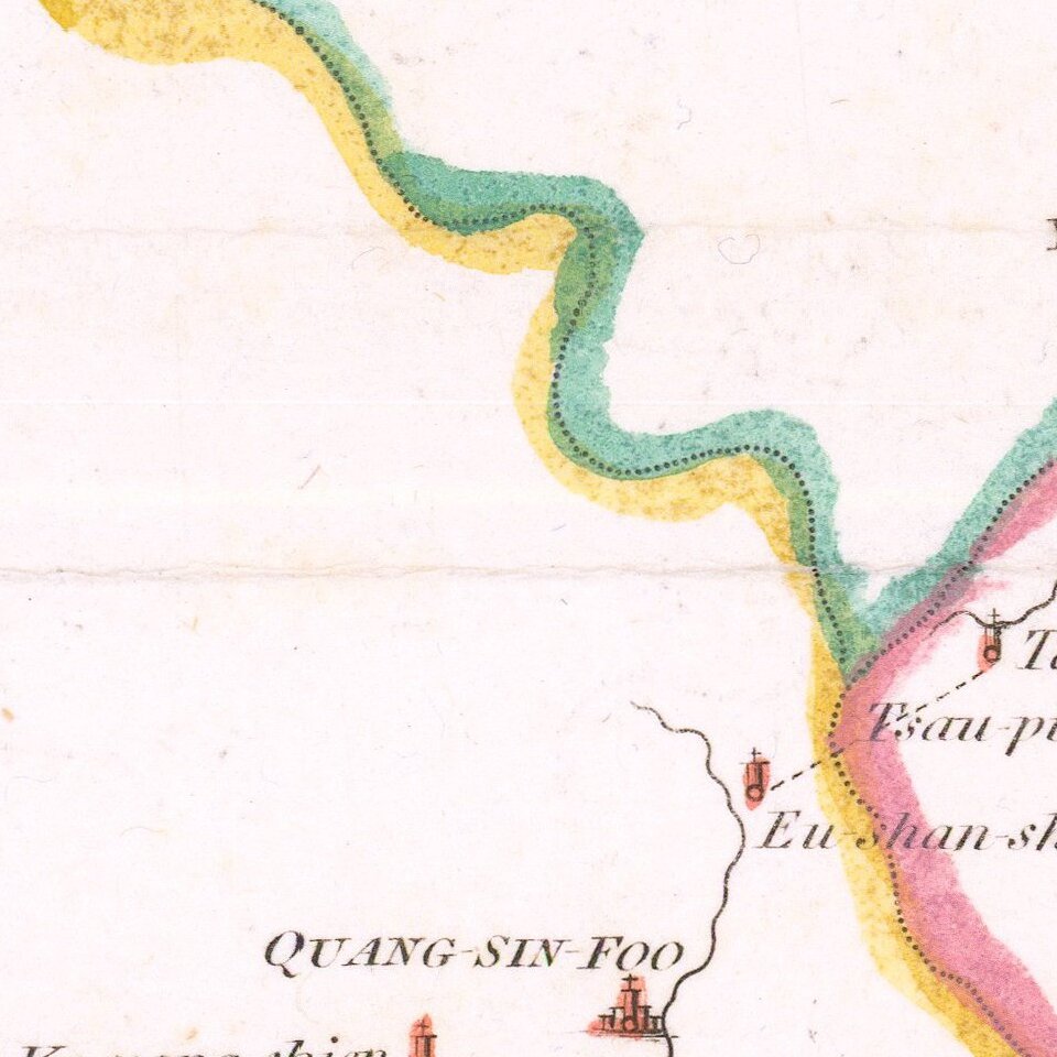 Detailed chart of the coast of China from Staunton's An Authentic Account of an Embassy from the King of Great Britain to the Emperor of China, showing the tracks of the vessels carrying the Earl of Macartney's Embassy along the coast of China with a note of the dates as well as a series of depth soundings in fathoms.