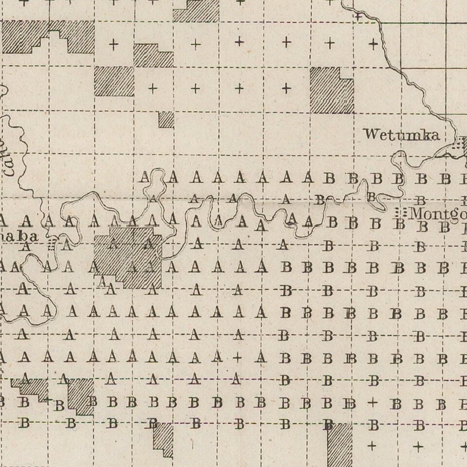 Perhaps most interesting is the location of the areas "under contract" (marked with an A) and those proposed to be surveyed in the following year, ending June 1846 (marked with a B).