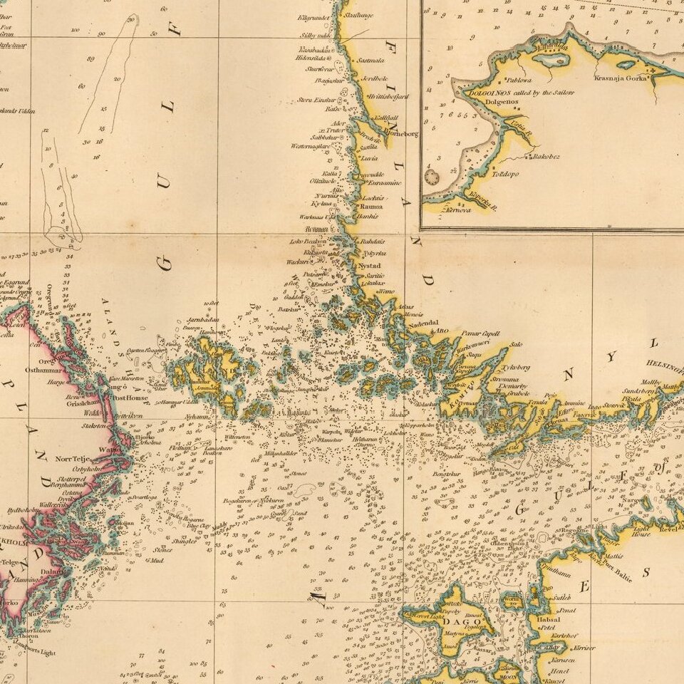 Highly detailed chart of the Baltic and contiguous coasts, from Faden's general atlas.