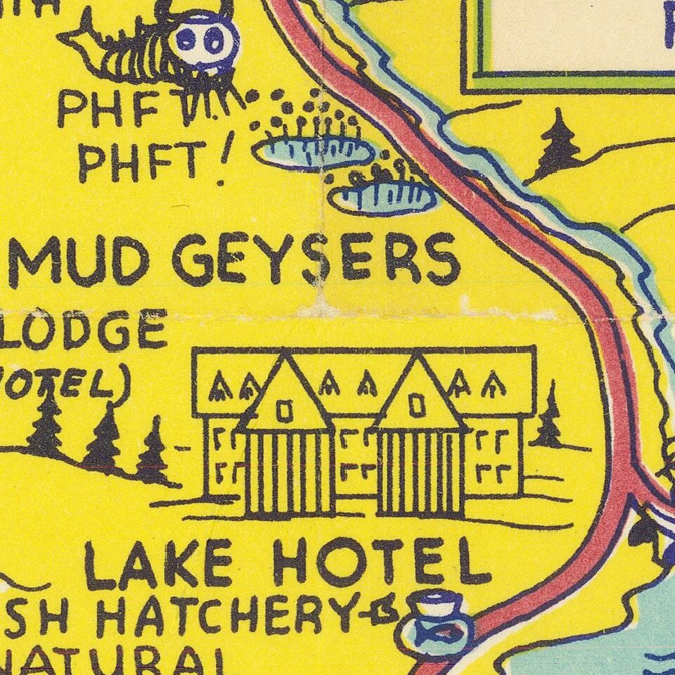 The Lindgren Brothers issued a number of other silly whimsical maps of national parks and other parts of the West. This is one of two Yellowstone maps.