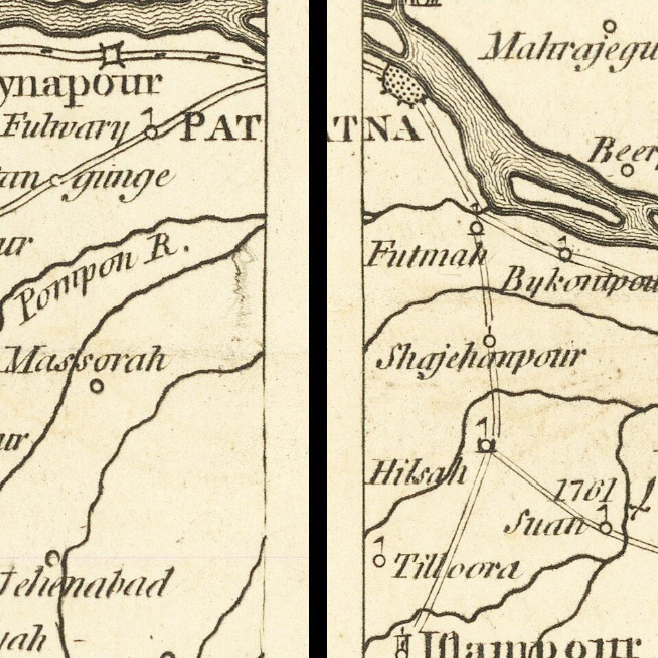 Th map was drawn by James Rennell F.R.S., Surveyor General of India, and engraved from the original drawing in the Possession of the East India Company. The map includes a great amount of detail and shows roads and military outposts.