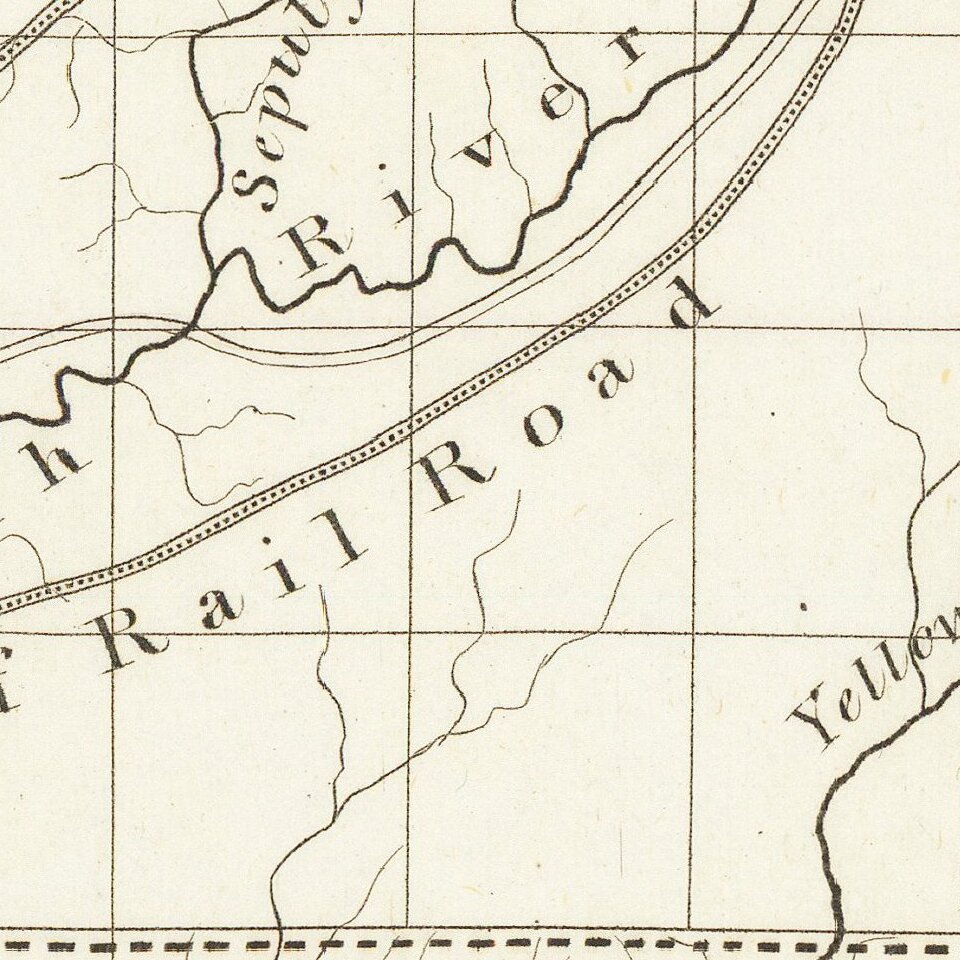 An early and important railroad map of parts of southern Alabama and the Florida Panhandle. The map shows considerable detail and notes the route of the railroad from Pensacola to Montezuma and on to Columbus. Also details the proposed road from Appalachicola to Marrianna.