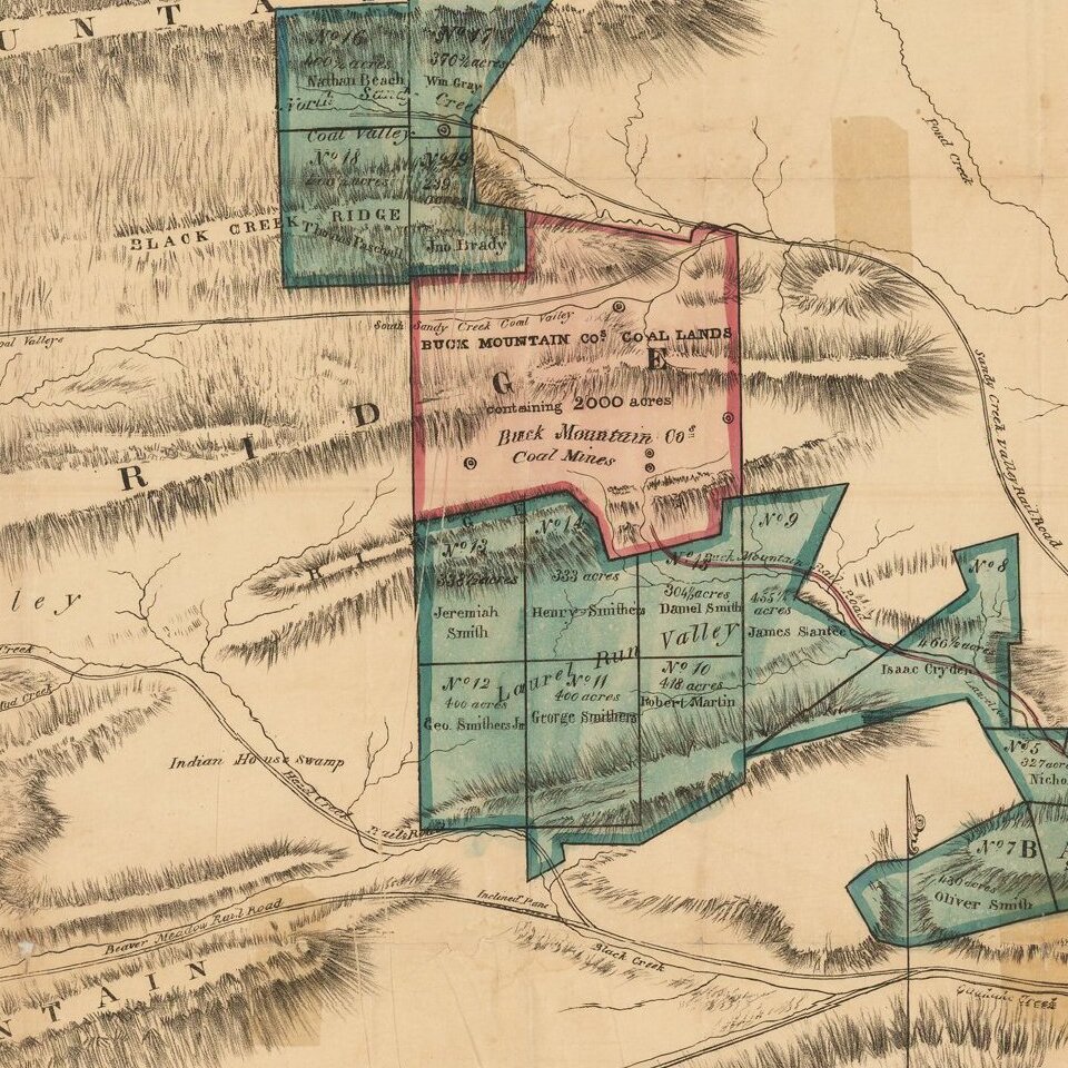 Detailed map of the mines of the Buck Mountain Coal Company, with names of owners, mountain ranges, etc.