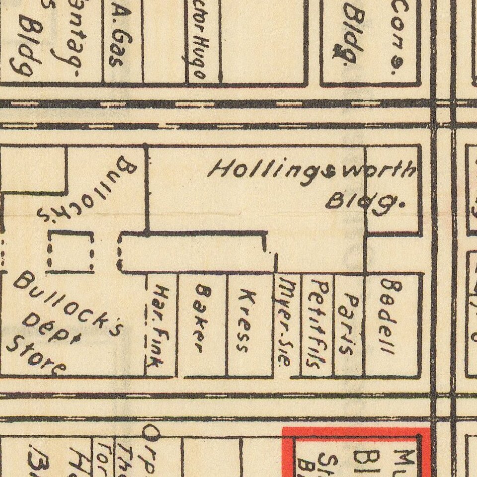 Interestingly, the map shows the footprint of the Los Angeles Central Library, which was built in 1926.