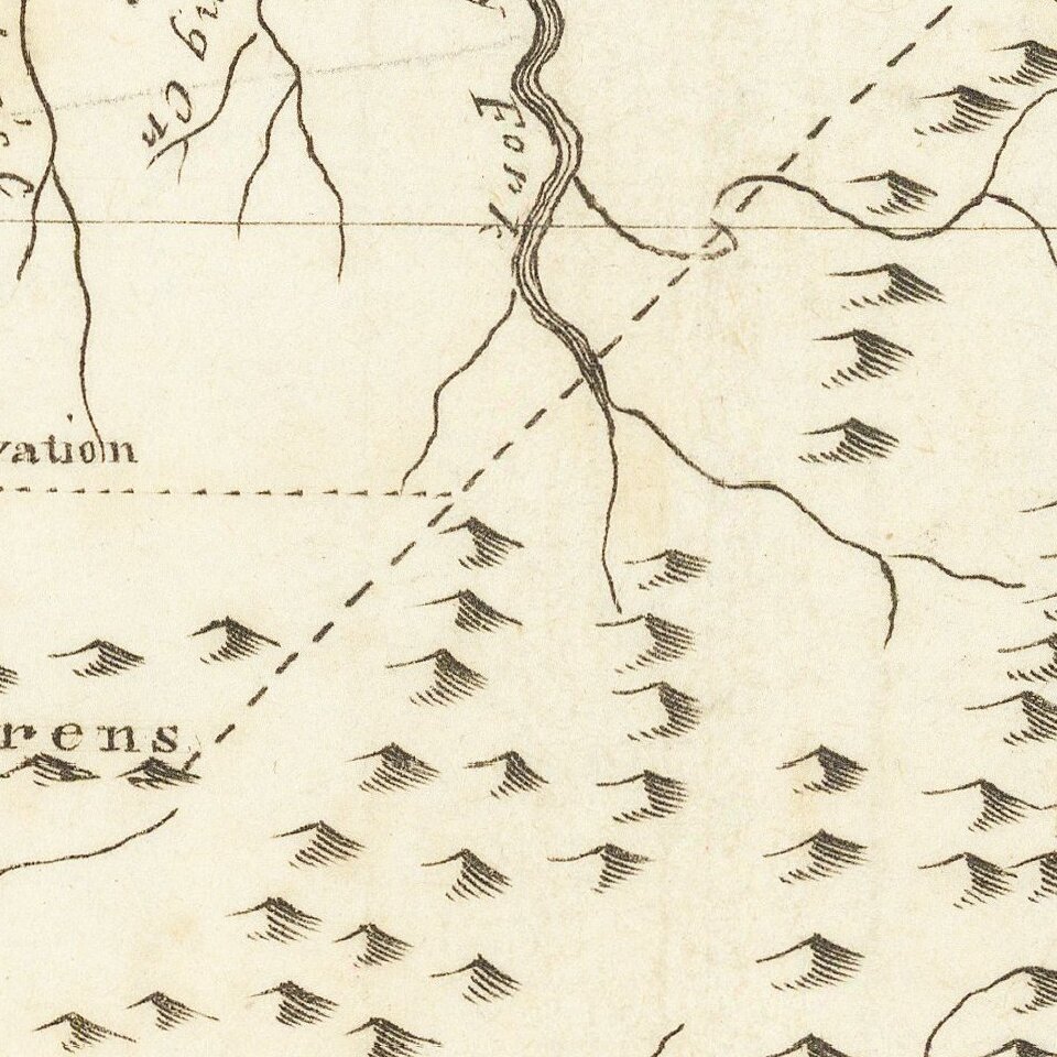 Shows early counties, Rivers, Mountains, Indian Villages, military reservations and many topographical details. Nashville appears, as does Clerksville, although the primary detail in the map is along the major rivers. Delineates public roads, Indian Boundaries, Indian Towns and notes the Width of rivers in yards.