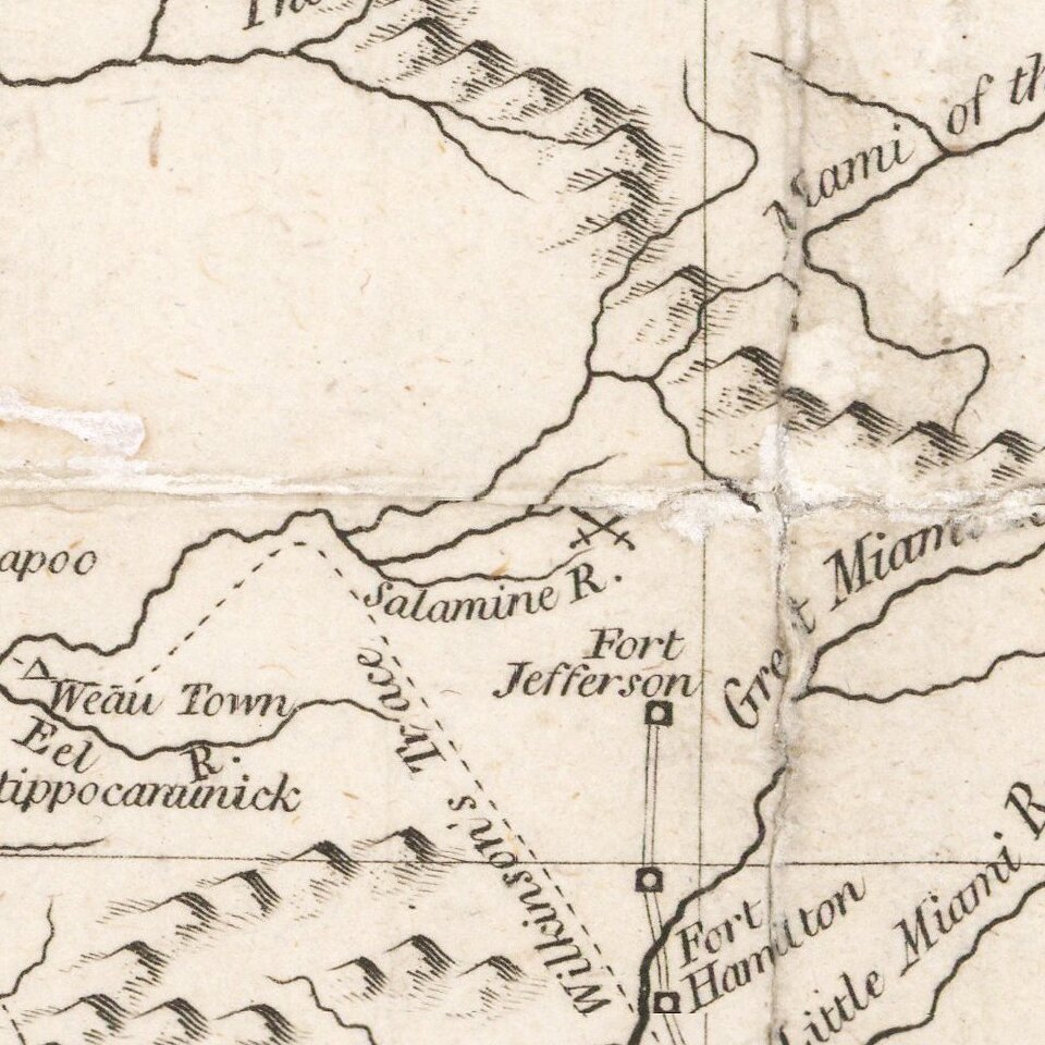 Gilbert Imlay, an army officer during the Revolutionary War, emigrated to Kentucky where he worked as a deputy surveyor under George May, at Louisville. Subsequently he went to Europe where he wrote of his experiences on the then-frontier. His book, published by J. Debrett, was illustrated with this and three other great early maps, all of which are scarce.