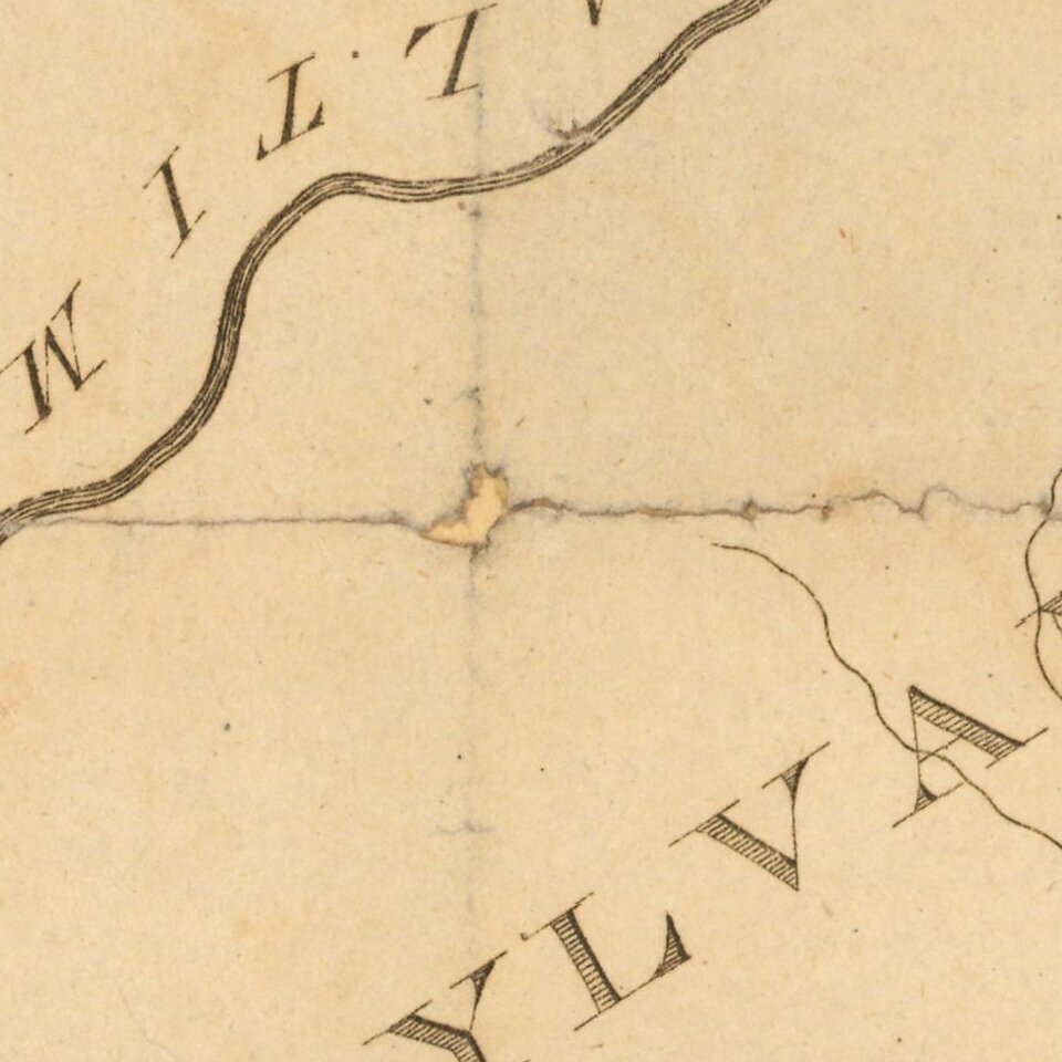 On the map, a prospectus appears at lower right by Church's land agent, Evert van Wickle, describing the quality and situation of the land to prospective settlers and outlining incentives to purchase and build around the newly formed village of Angelica in Allegany County. An engraved note in the lower margin describes a "Road (as laid down in Red Ink) from Angelica to the mouth of Ishua Creek, will certainly be opened by next Fall." This would have been attractive to turn of the nineteenth century settlers, seeing Ishua Creek flowing into the Allegheny River, consequently connecting it to Pittsburgh and other points west.
