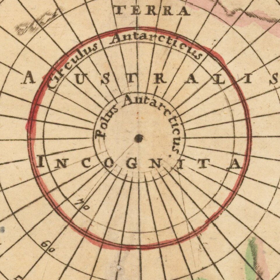 Rare miniature map of the South Polar region, from Seller's Atlas Maritimus.