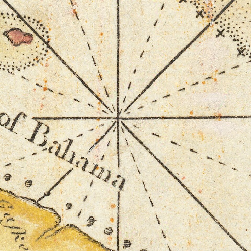 This state of the Bahamas map, the fourth state, appeared in later editions of the English Pilot, Fourth Book. It debuted in the 1737 edition and was still in print in the 1764. However, the fourth state is relatively rare on the market today due to its smaller numbers as compared to earlier states and later replacements.