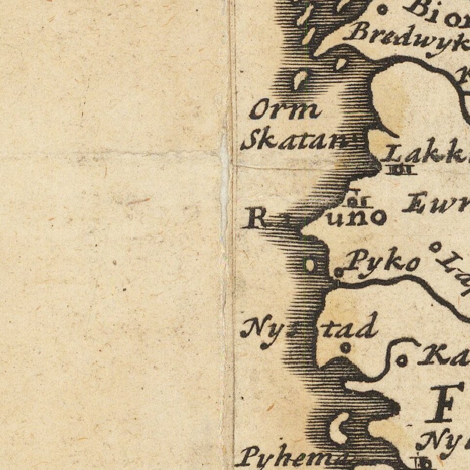 Nice example of Herman Moll's map of Scandinavia, with a large inset map and 5 wonderful vignettes, including a very early example of skiing.