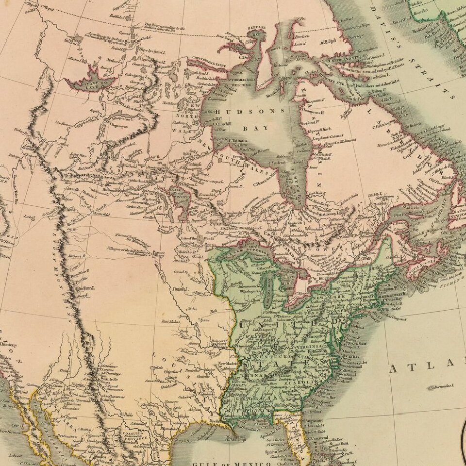 The map includes excellent detail in Canada, especially the unsettled western portions, east of the Rocky Mountains.