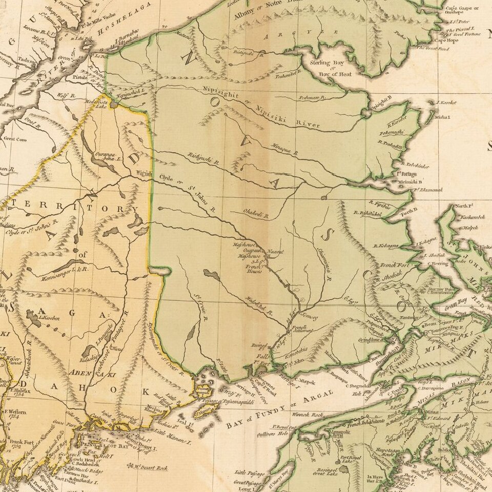 First state of Jeffery's map of New England and Nova Scotia, published by Thomas Jefferys in London.