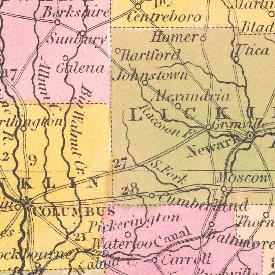 Nice example of Tanner's map of Ohio, hand colored by county, showing roads, canals, towns, steamship routes and other interesting details.
