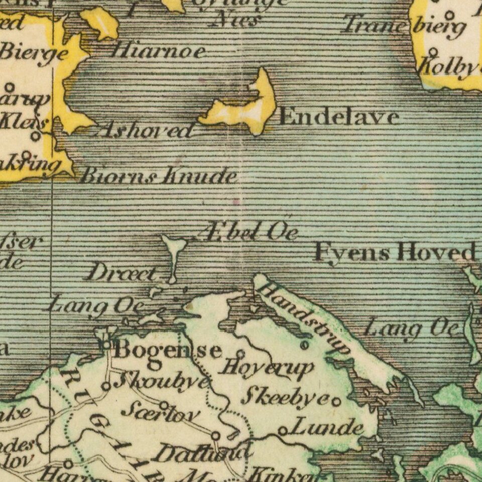 Detailed map of Denmark and neighboring regions, colored by provinces.