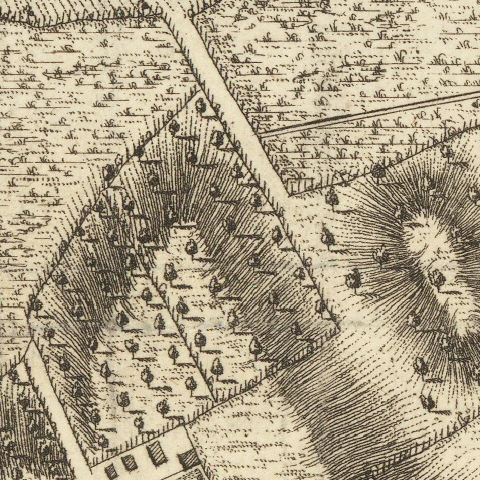 Montresor's plan is the first for New York to show the northern environs of the city, including the old village of Greenwich, and the open fields, gardens and estates of several important merchants and planters. These include the establishments of such well-known families as Bayard, Rutgers, and de Lancey. The Bowry, the 'Road to Albany and Boston,' is clearly marked. At its foot are the 'rope walk,' and the 'Jews Burying Gr.,' the first Jewish cemetery in New York.