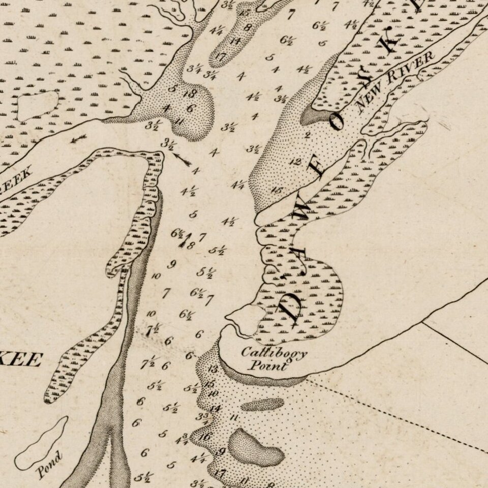 Gascoigne's finely engraved chart was produced at the beginning of the American Revolution, at a time when the outcome among the combatants was still very much in doubt. The chart covers the coastal region of South Carolina, from Port Royal Sound in the north, down past the mouth of the Savannah River and Tybee Island, Georgia, in the south, centered on Hilton Head Island (called "Trench's Island") and "D'Awfoskee Sound," which is today known as Calibogue Sound.