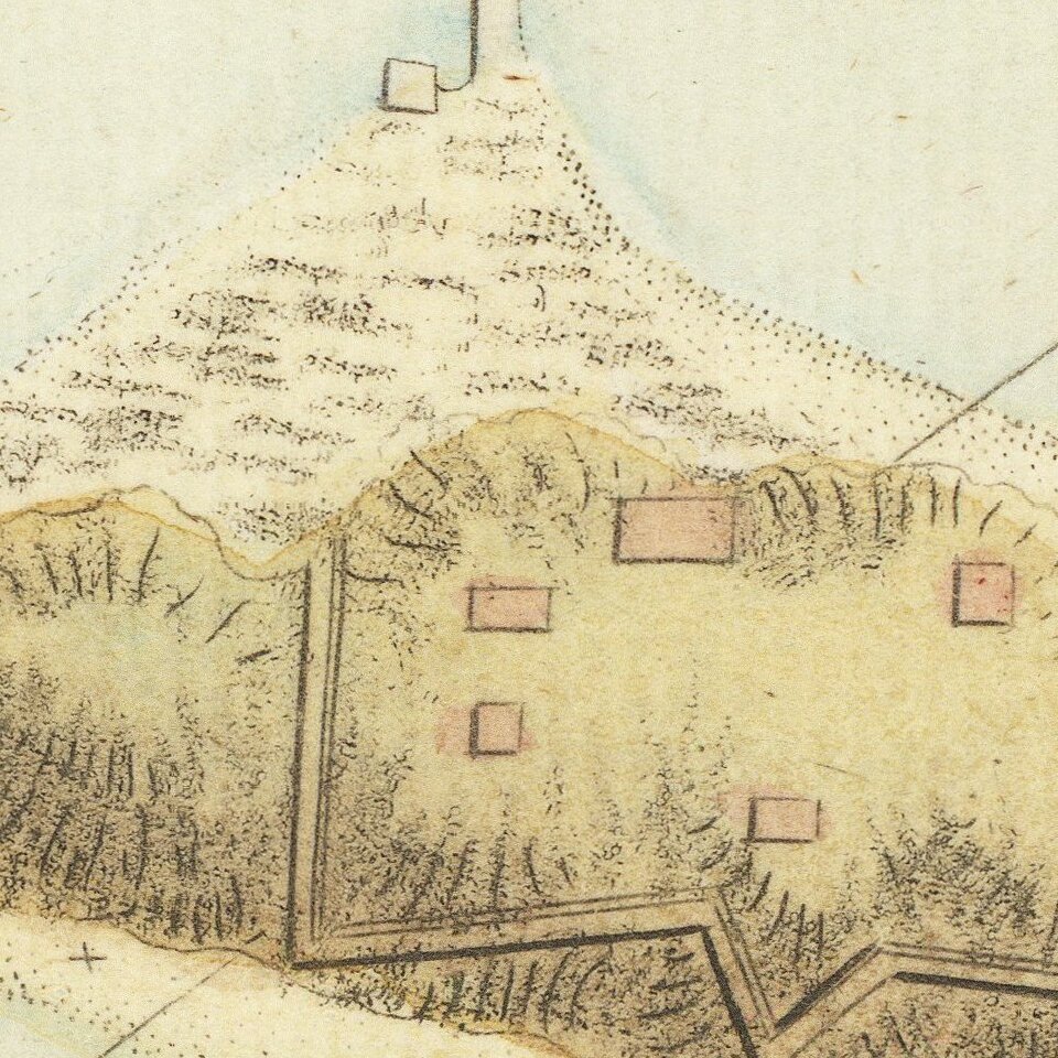Though the Neptune is most frequently associated with publisher J.F.W. Des Barres, its many New England charts, plans and views were based on surveys overseen by Samuel Holland, a Dutch-born surveyor and engineer who entered British service during the French and Indian War. After the War Holland had proposed to the Board of Trade “an accurate and just Survey… upon… a general scale and uniform plan” of North America east of the Mississippi. (Harley, p. 27) This was to be a “geodetic” survey following the most advanced methods then in use in Europe, but applied for the first time in North America: The locations of control points would be established by rigorous astronomical observation, intermediate areas pinpointed by triangulation, and details sketched in from direct observation.