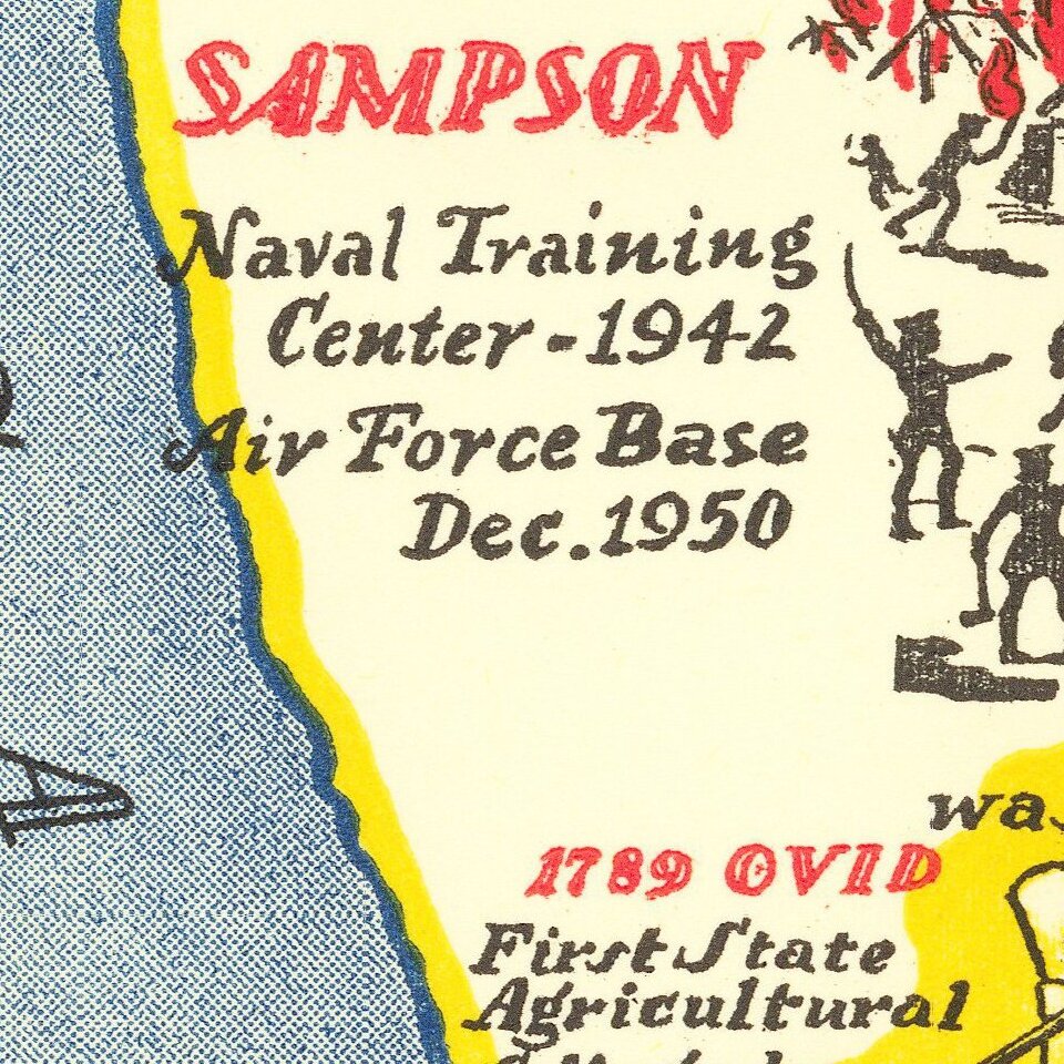 Decorative pictorial map of the Finger Lakes Region of New York.