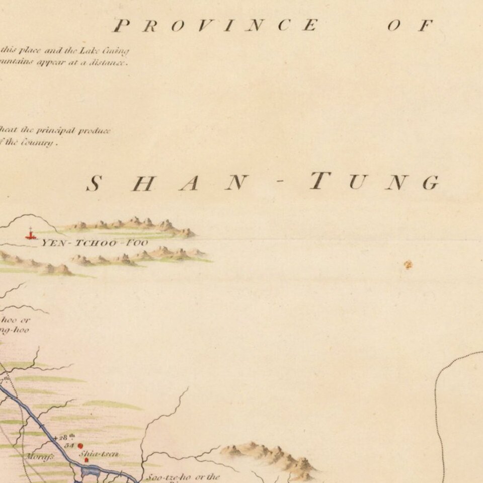 The map details George Macartney's Embassy to China, the first British embassy to that country, undertaken between 1792 and 1794. During the second half of the 18th Century the British were eager to open up further trade with the Chinese Empire. Since 1757, international trade had been restricted to the port of Canton in southern China. In 1792, Prime Minister William Pitt the Younger, dispatched George Macartney, an Anglo-Irish diplomat, on a mission to the court of the Emperor Qianlong in Beijing in an effort to gain trade concessions.