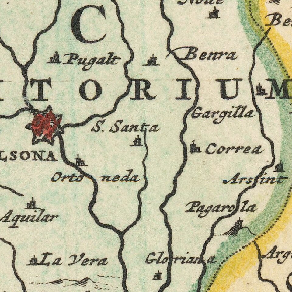 De Wit (1629 ca.-1706) was a mapmaker and mapseller who was born in Gouda but who worked and died in Amsterdam. He moved to the city in 1648, where he opened a printing operation under the name of The Three Crabs; later, he changed the name of his shop to The White Chart. From the 1660s onward, he published atlases with a variety of maps; he is best known for these atlases and his Dutch town maps. After Frederik’s death in 1706, his wife Maria ran the shop for four years before selling it. Their son, Franciscus, was a stockfish merchant and had no interest in the map shop. At the auction to liquidate the de Wit stock, most of the plates went to Pieter Mortier, whose firm eventually became Covens & Mortier, one of the biggest cartography houses of the eighteenth century.