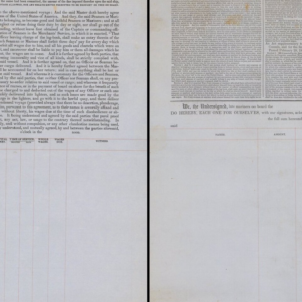 Fine large example of a form contract of the type utilized my American Mariners in the mid-19th Century.
