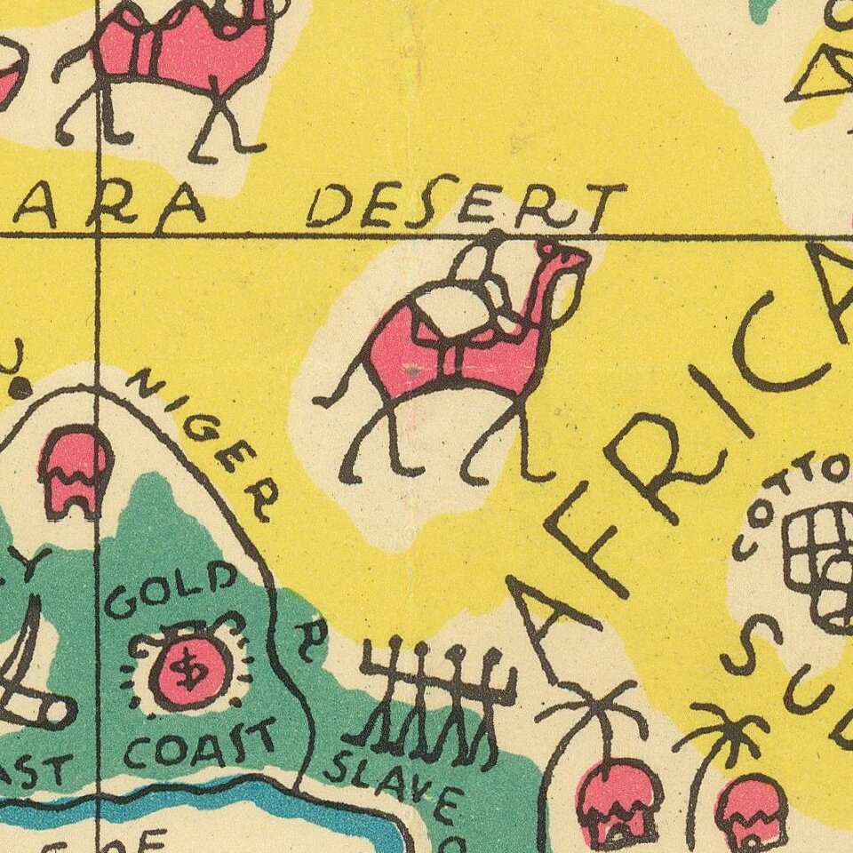 Rare Pictorial World Map, prepared as a promotional premium to promote the Captain Ezra Diamond Radio Show.