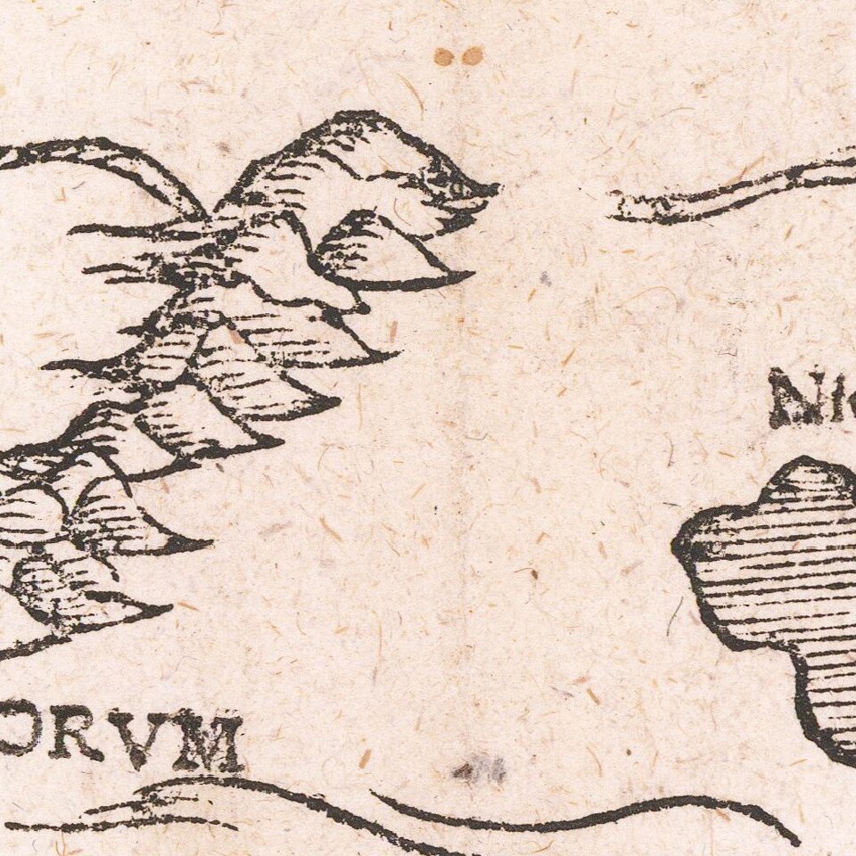 Sixteenth century mapmakers, including Waldseemüller and Münster, chose to follow the Ptolemaic model. This was typical of cartographers at the time, who had abandoned Ptolemy’s coastlines in favor of the more recent Portuguese outlines yet who also clung to Ptolemaic place names for the interior of Africa well into the nineteenth century.