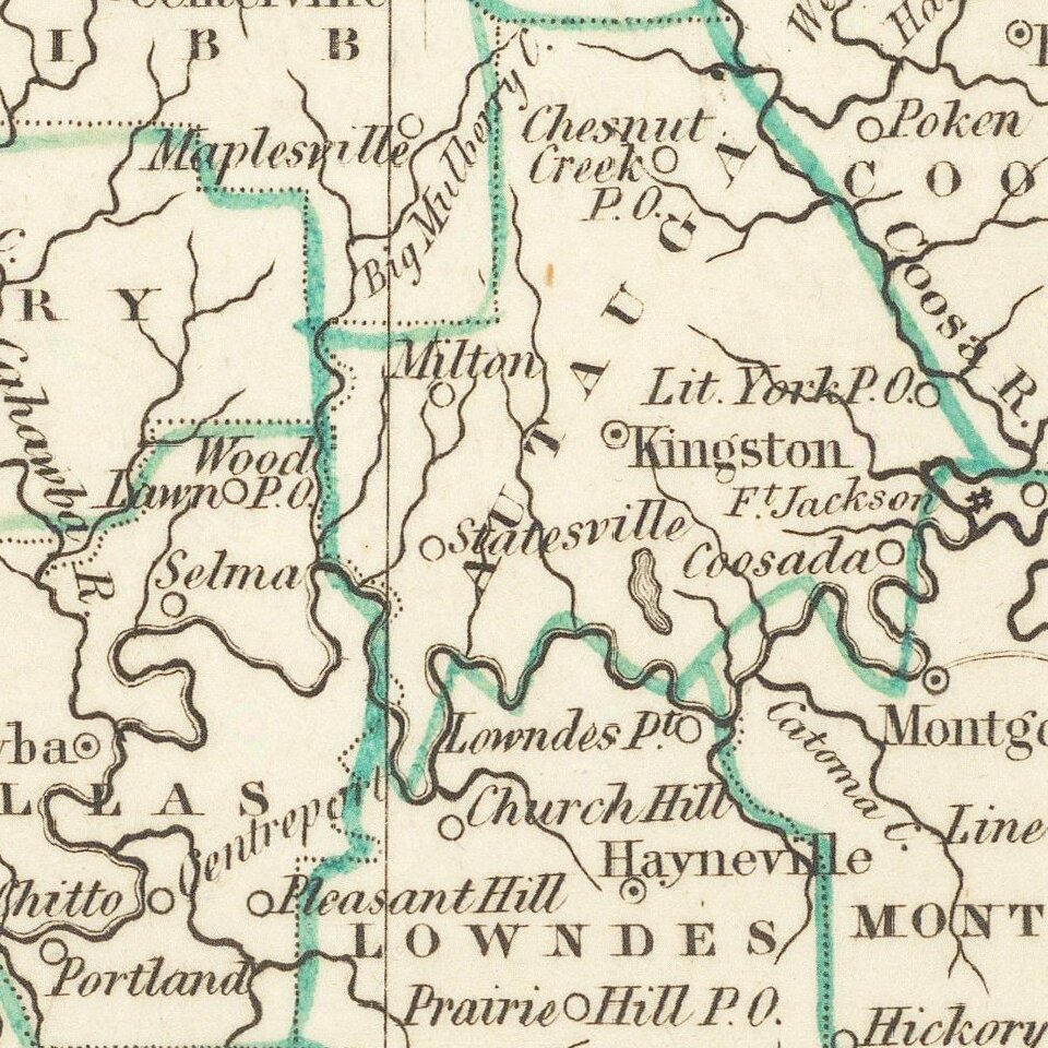 Fine example of this early map of the state of Alabama from Bradford's Comprehensive Atlas.