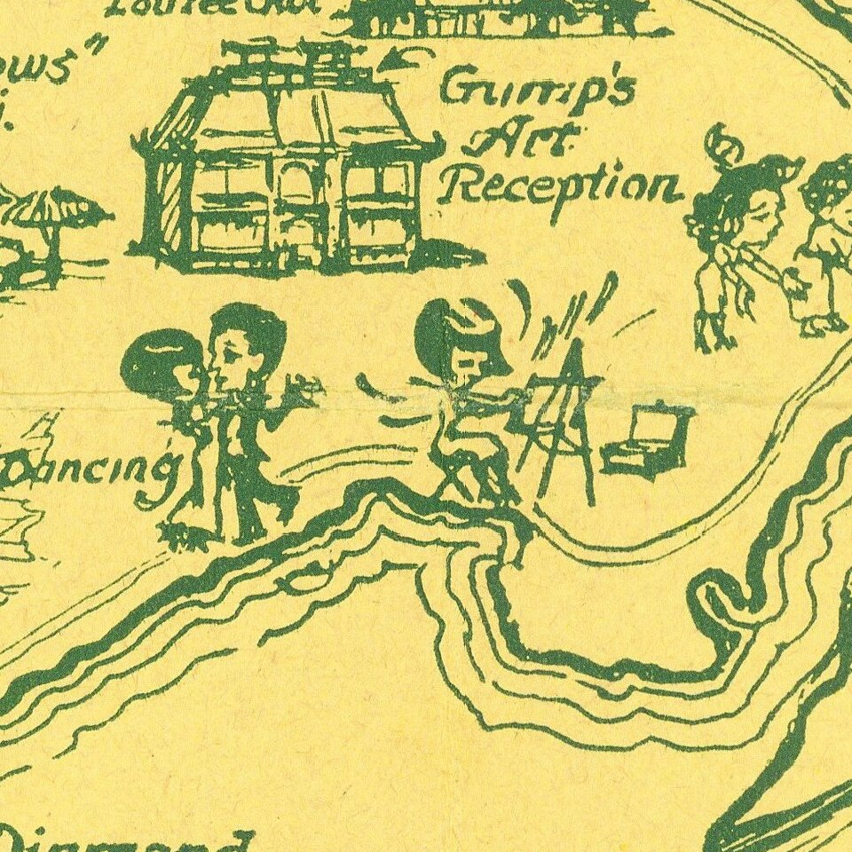 The map provides a lively look at Oahu immediately after War War II, and Klinker's visit, locating dozens of tourist attactions and points of interest, complete with Klinker's illustrated humor.