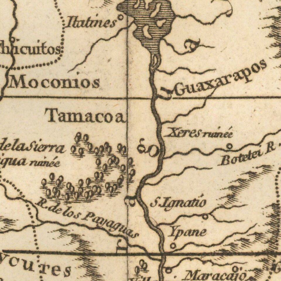 The map illustrates South America at the height of its Colonial period and at a time when the interior of the Continent was being actively explored and exploited by the Jesuits.