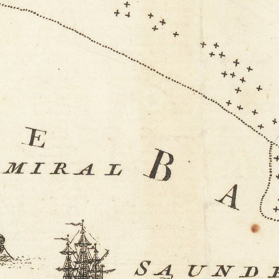 This fascinating map embraces the environs of Quebec City and was one of the first maps to be printed in London following news of the British victory on the Plains of Abraham in 1759, the fateful showdown between the armies of General James Wolfe and the Marquis de Montcalm. It shows the city and topography in carefully rendered detail. All of the main scenes of action surrounding the British siege are shown, including the abortive attack on Beauport, the British Headquarters at Levis and the site of the decisive Battle of the Plains of Abraham. Interestingly, each vessel of the British fleet, under the overall command of Admiral Saunders, appears in pictographic form, with the names of each ship labeled. The map was considered to be by far the most authoritative geographical depiction of this momentous series of events and was used as the source map for many other publications printed in London.