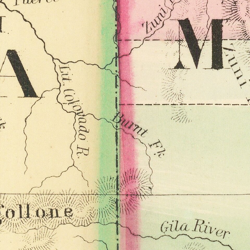 Attractive regional map of New Mexico and Arizona, colored by counties with beautiful decorative border.