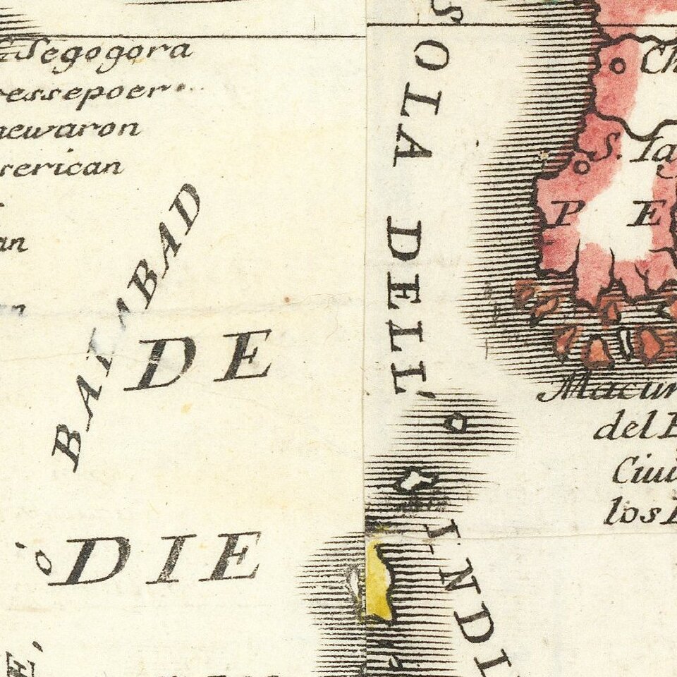 Another example of received wisdom and the perpetuation of myths is east of Japan, where a large landmass is labeled as Terra d'Iesso. This island is on many eighteenth-century maps. Historically, Eso (Yedso, Yesso) refers to the island of Hokkaido. It varies from a small island to a near-continent sized mass that stretches from Asia to Alaska. Here, however, Coronelli tells the reader that the Dutch discovered the island in 1643, which indicates that he is eliding Yesso with two other North Pacific chimeras, Gamaland and Compagnies Land.