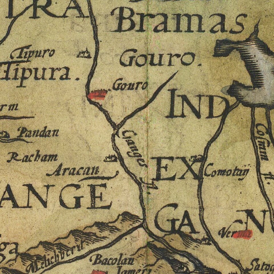 Gerard De Jode (1509-1591) was a pre-eminent mapmaker in the late seventeenth century, a time when the Dutch dominated the map trade. He was known for his many maps, some of which featured in Speculum Orbis Terrae (first edition Antwerp: 1578). Although never as successful as Ortelius’ Theatrum, the Speculum did get republished in a second edition in 1593, two years after De Jode’s death, by Arnold Coninx, and included this map. After his death, Gerard’s son, Cornelis (1568-1600), and his wife, Paschina, ran the shop. Unfortunately, Cornelis died young in 1600, aged only 32, and the stock and plates were sold to the publisher Joan Baptista Vrients.