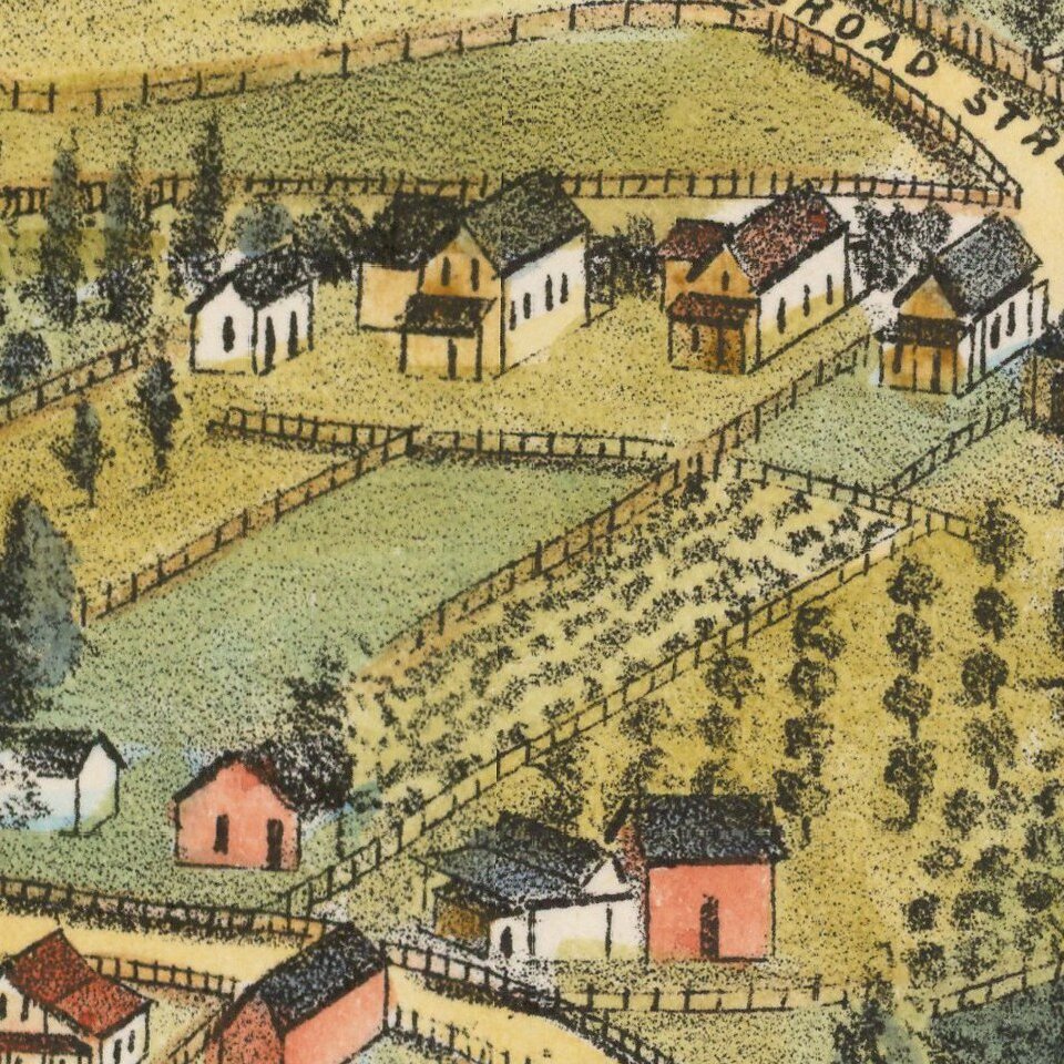 This fine view illustrates one of the important early California Gold Rush boom towns.