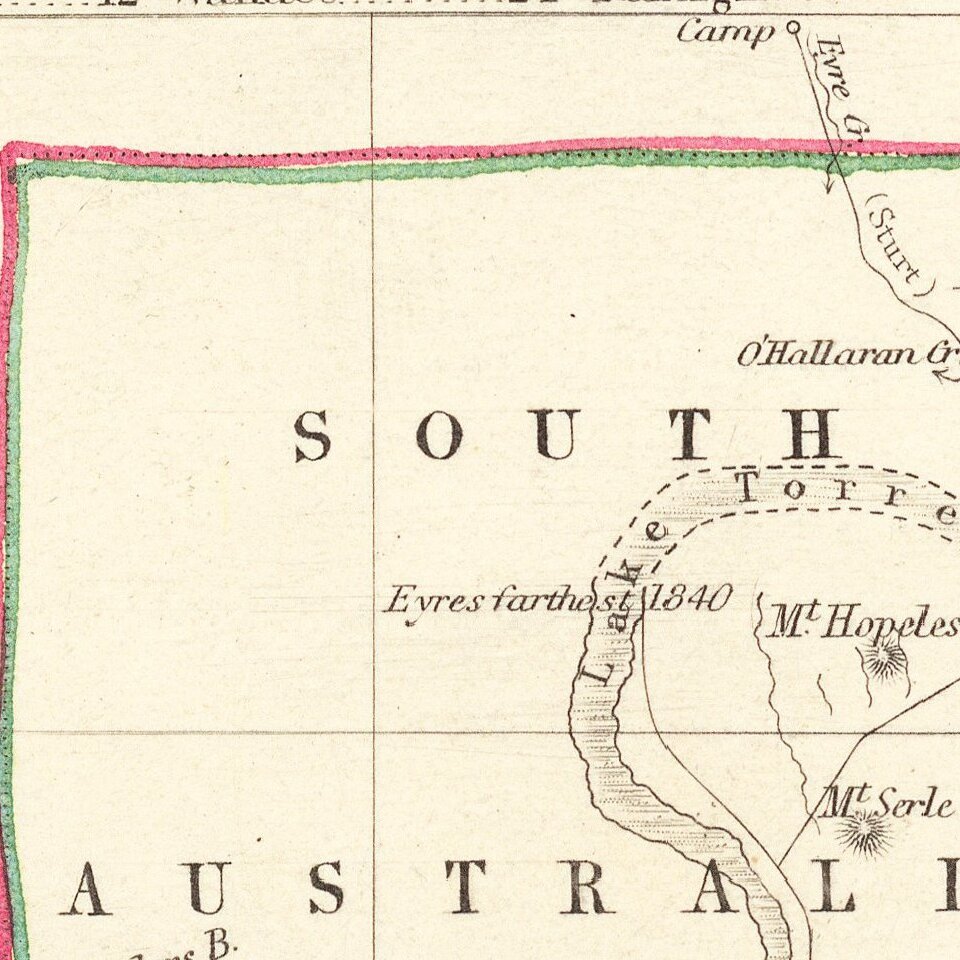 Gorgeous full color example of this wonderful map of Australia, with vignettes of Parrots, two sets of Aborigines, Kangaroos, and Sydney.