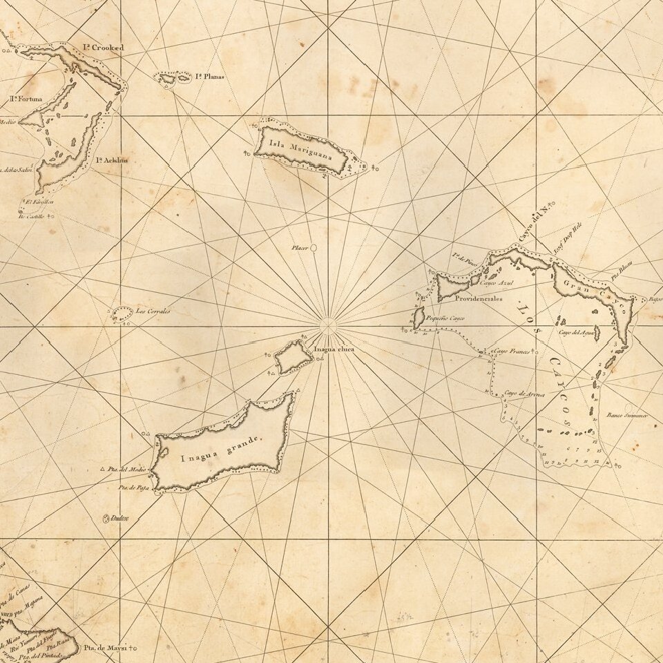 A Working Spanish Sea Chart Centered on the Turks & Caicos Islands and the Southern Bahamas
