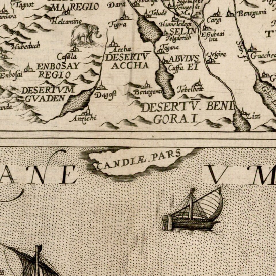 Nice example of De Jode's map of North Africa, Egypt, the Red Sea and the Holy Land, including all of the Mediterranean coastline of Africa.