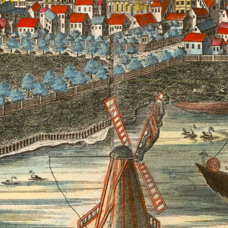 Striking large format view of Berlin, showing the town with the river in the foreground and the town beyond.