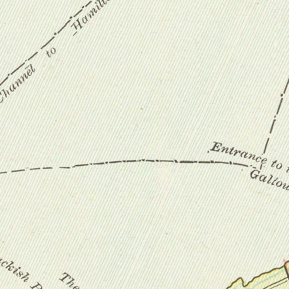 Shows towns, roads, rivers, points, bays, inlets and a number of other features.