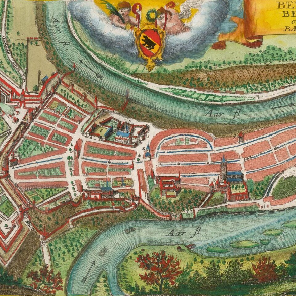Scarce detailed town plan of Bern, published by Bodenehr.