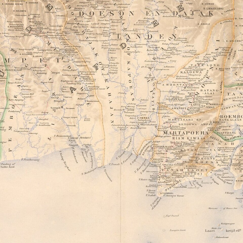 Fine map of southern Borneo, from Stemfoort's Atlas der Nederlandsche bezittingen in Oost-Indië naar de nieuwste bronnen samengesteld en aan de regering opgedragen.