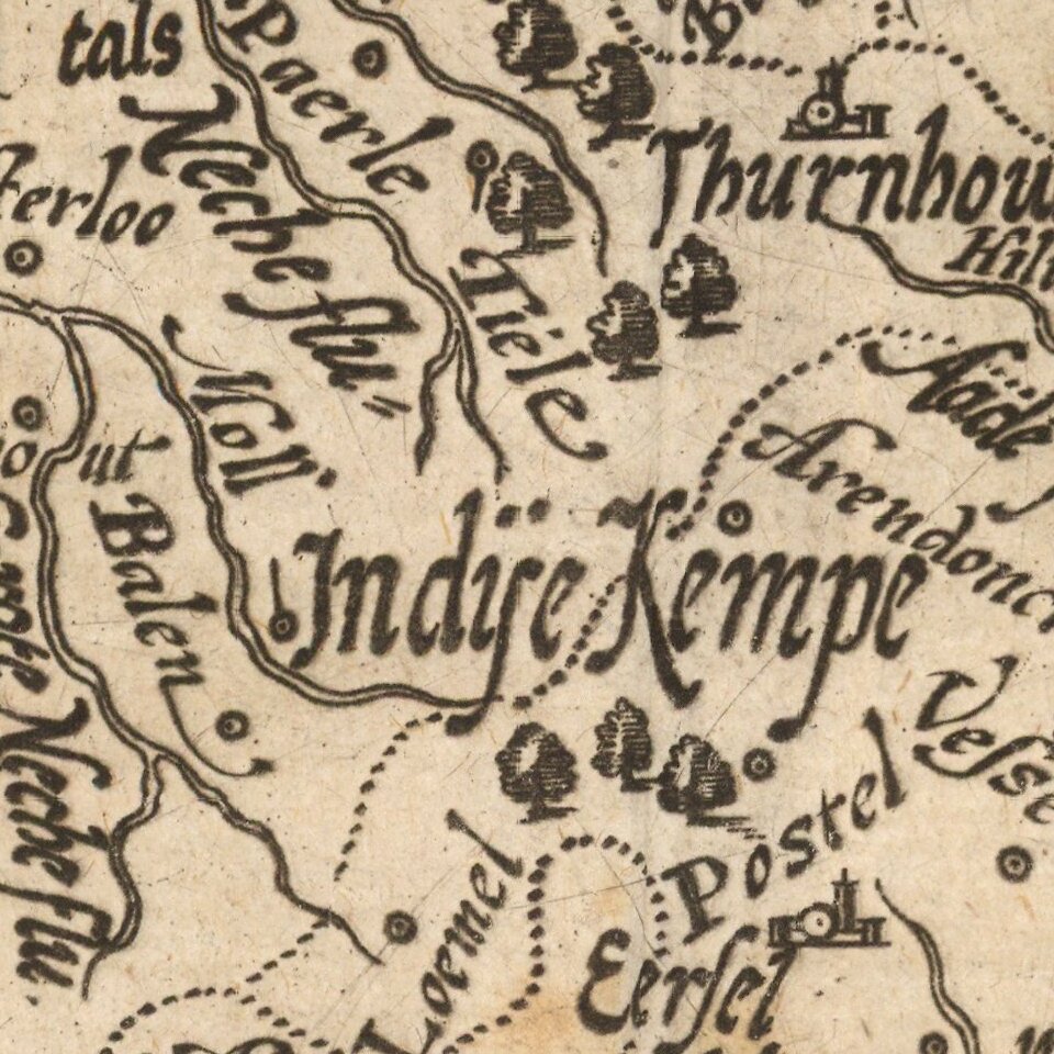 Nice example of this scarce map of the Province of Brabant, oriented with west at the top, published in Cologne.