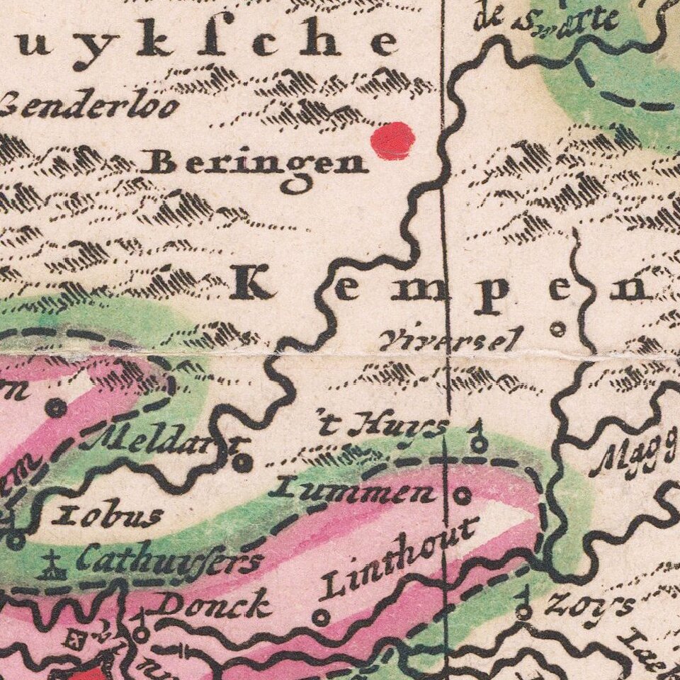 Striking map of the northern Duchy of Brabant and neighboring regions, published by Peter Schenk.
