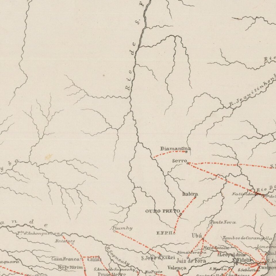 Rare railroad map of Brazil, published by the Brazilian Government for distribution at the Philadelphia Centennial Exhibition in 1876.