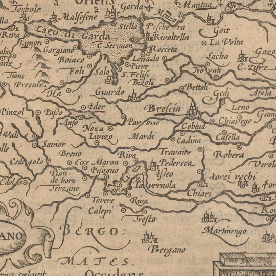Nice example of this early state of Barent Langenes map of the Brescia region, which first appeared in the 1598 edition of Langenes Caert-Thresoor, published in Middelburg.