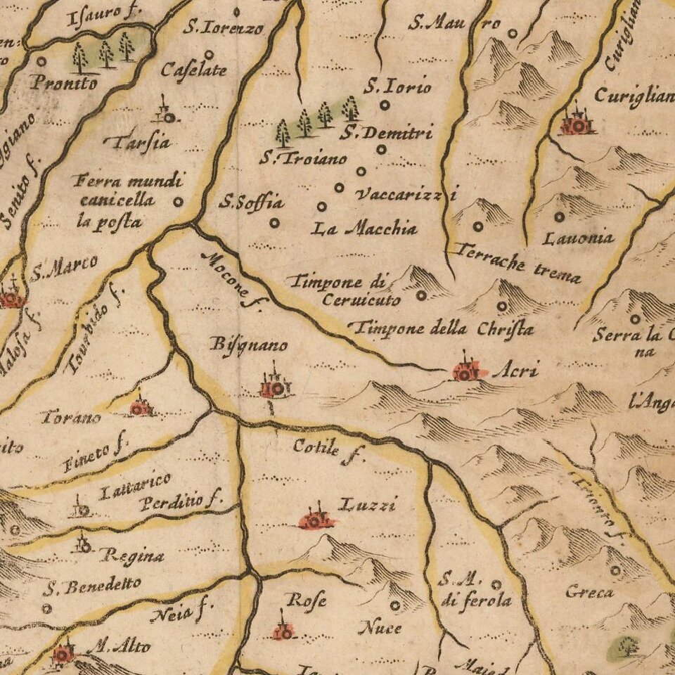 Larger towns include Cosenza and Rossano.
