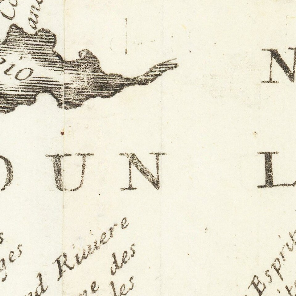 Coronelli's mapping includes an elaborate depiction of the Grand Bank with numerous soundings and differentiated stippling to indicate various elevations. It is unusual to see underwater topography render at such high definition.